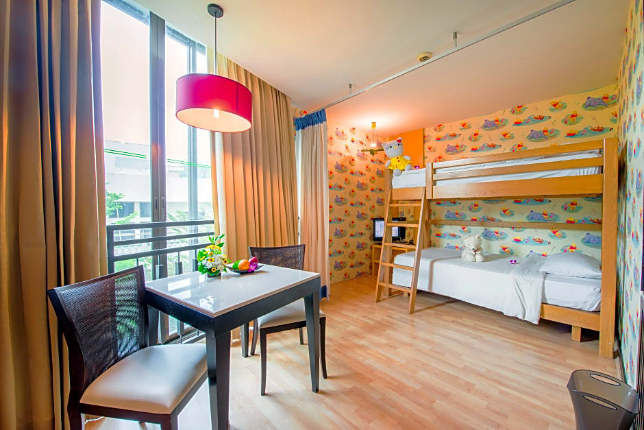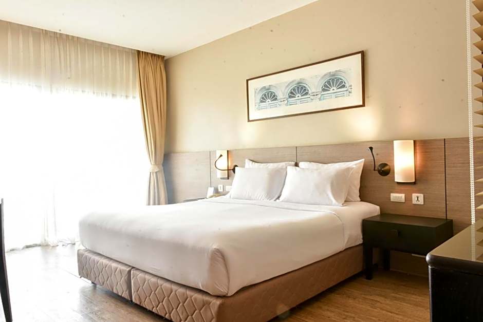 Deluxe Pool View is 377 square feet and includes either a king-size bed 150-183 width or a single bed 80-130 width plus balcony, cable tv, hairdryer, tea and coffee making facilities , ironing set, safe, bathrobes, and slippers and is Wheelchair-accessible.